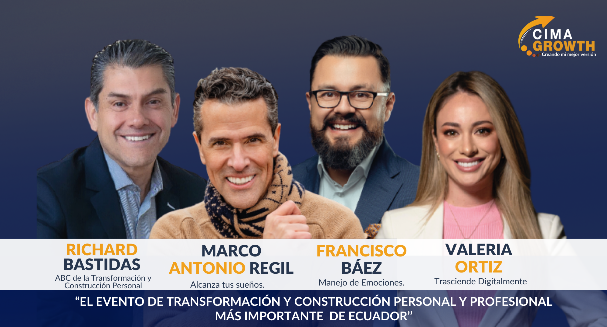 Junto a Marco Antonio Regil nuestros coaches Francisco Báez & Richard Bastidas cada uno con más de 15 años de experiencia nos compartirán sus conocimientos,  aprenderás las estrategias probadas y los secretos para desbloquear tu máximo potencial.